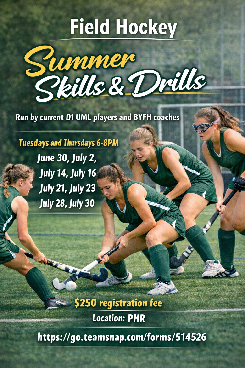 Sharpen your game this summer with our Field Hockey Summer Skills & Drills program! Led by current Division I UMass Lowell players alongside experienced BYFH coaches, this clinic is designed to help athletes build confidence, improve technique, and elevate overall performance in a fun, competitive environment.